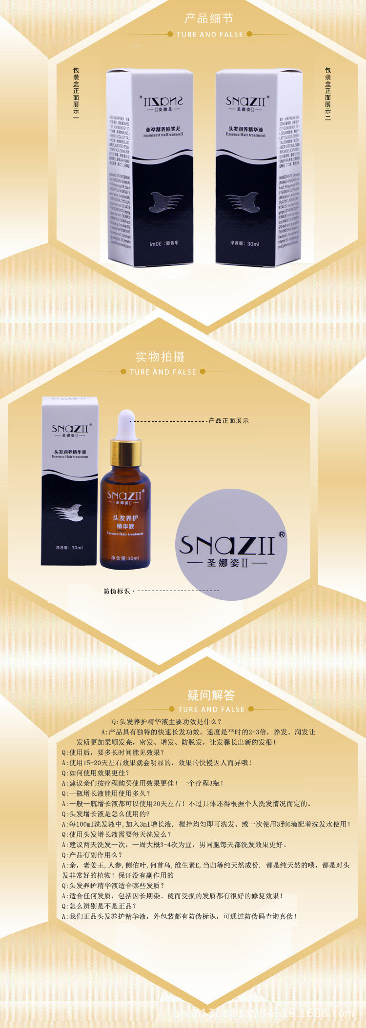 Дополнительная информация о Snazii для роста волос быстрее, натуральное средство для роста волос от падения 30 мл поврежденных волос ремонт грубой остановки выпадения воло...